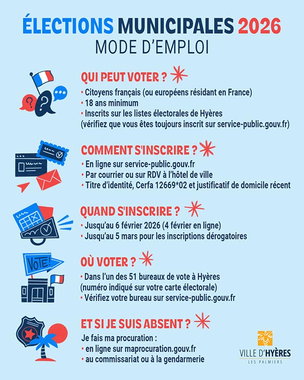 Pour toute question, veuillez contacter le service Élections au 04.94.00.82.47, ou 04.94.00.82.22, ou par mail à : service.election@mairie-hyeres.com