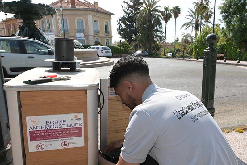 La mise en route des 𝟒𝟒𝟎 𝐛𝐨𝐫𝐧𝐞𝐬 𝐚𝐧𝐭𝐢-𝐦𝐨𝐮𝐬𝐭𝐢𝐪𝐮𝐞𝐬 installées sur l’ensemble du territoire communal, qui ciblent les moustiques adultes, est avancée cette année au 1er mai (au lieu du 1er juin). Il a été demandé à la société gestionnaire, Qista, de procéder à une vérification de leur état de fonctionnement.