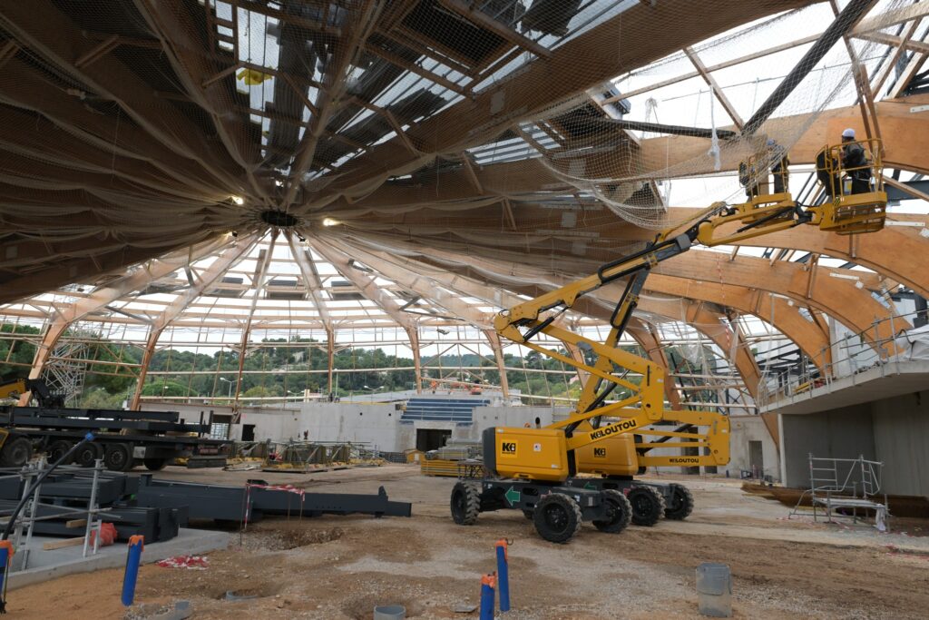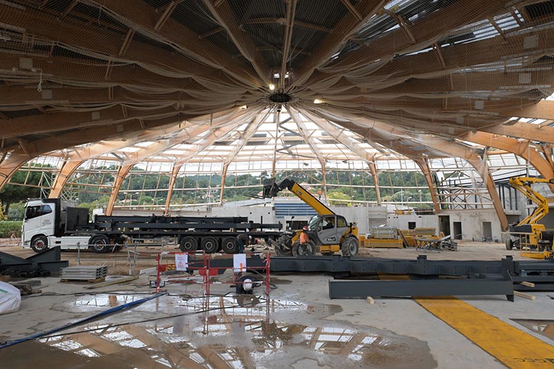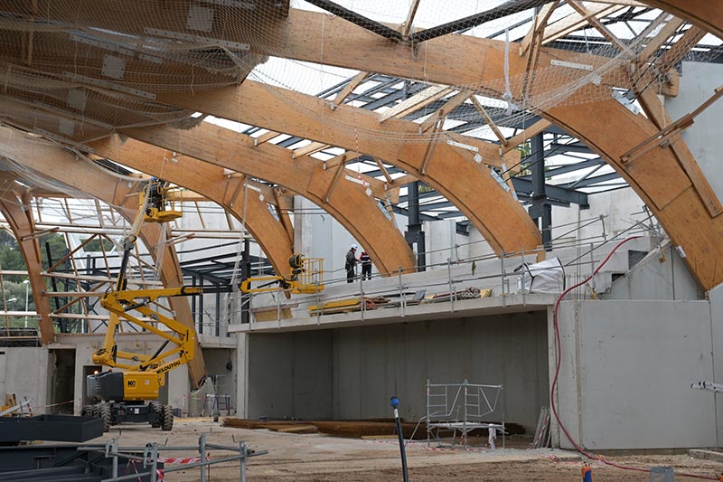 La charpente d’origine a été réhabilitée, renforcée et sécurisée, permettant ainsi d’éviter une démolition-reconstruction, choix qui limite l’empreinte carbone du projet, tout en respectant l’architecture emblématique du bâtiment.